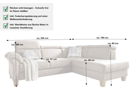 Ecksofa 245 cm grau - Sofaprogramm - Premium Version - ARNGAST
