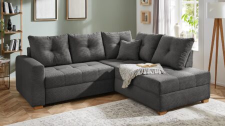 Ecksofa Cord dunkelgrau - Schlaffunktion Bettkasten 228 cm - HEIDELBERG