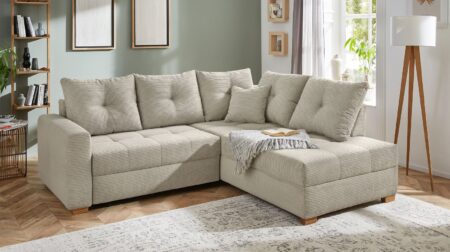 Ecksofa Cord beige mit Schlaffunktion 243 cm - Bettkasten - POLL